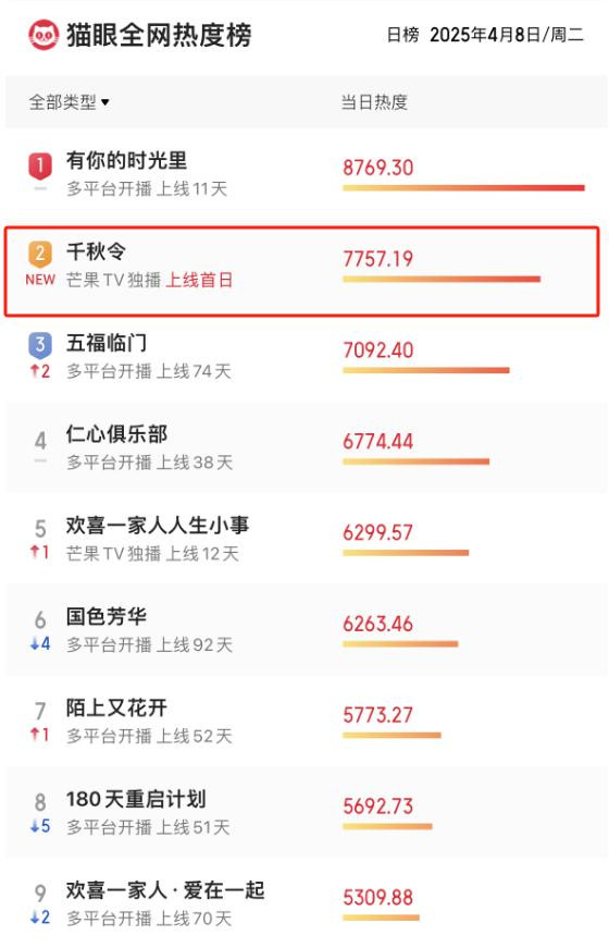 《千秋令》一经芒果TV播出,便迅速吸引了众多观众的目光。首播时收视率直线上升,几乎与童瑶的新剧持平。众多观众熬夜观看,一口气看完了三集,完全沉浸其中。这部新剧有望成为国产古装剧的新典范,开播后不久便在观众中引发了热烈的讨论。